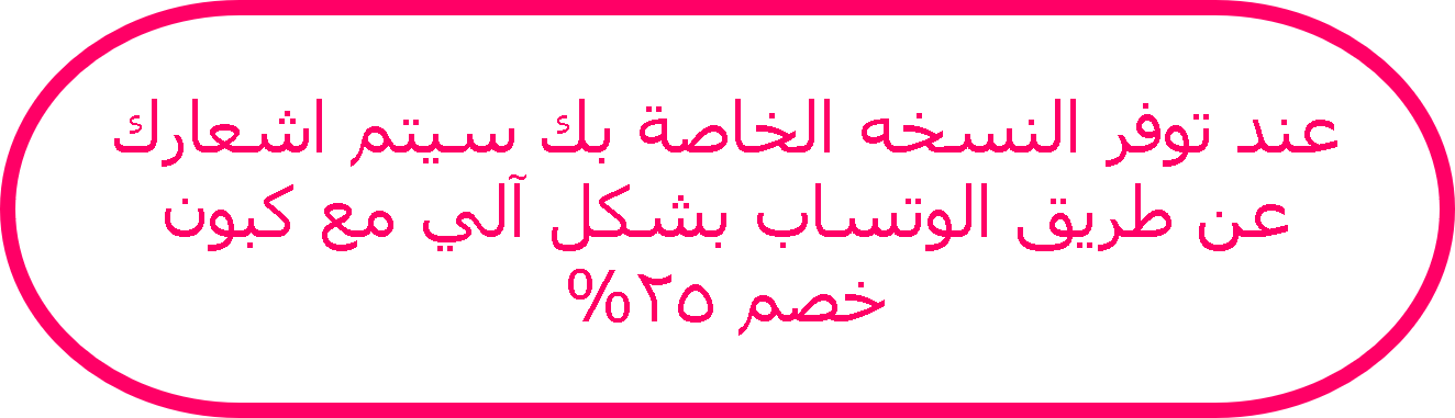سيتم اشعارك من خلال الوتساب على الرقم المسجل بالحجز مع كبون خصم 25%
